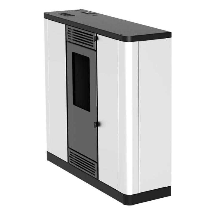 Teplovzdušná peletová pec Aurora Slim sa výborne hodí predovšetkým do užších priestorov, keďže hĺbka pece je len 35 cm. Aj napriek tomu má zabudovaný zásobník na 12,5 kg peliet. Jej veľkou prednosťou je vykúrenie ďalšej miestnosti vďaka ventilátoru so vzduchovým potrubím.