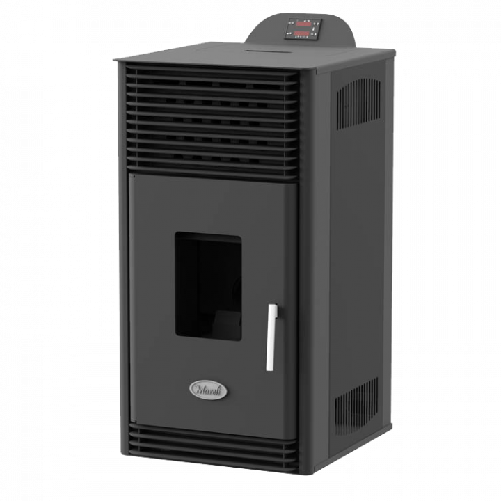 Teplovzdušné kachle od výrobcu Mareli Systems PS 12 KW sú výborným spojením štýlu, dizajnu a kvality. Používanie kachlí je veľmi jednoduché. Pelety sa zapaľujú pomocou zapaľovača (žhaviča), ktorý ich rozsvieti v priTeebehu niekoľkých sekúnd. Pec je vybavená LED displejom, na ktorom je možné nastavenie izbovej teploty podľa Vašich potrieb. Vďaka vstavanému ventilátoru sa teplo cez prieduchy dostáva do celého priestoru. Údržba je nenáročná, je však potrebné ju vykonávať pravidelne. Pec je vybavená automatickým riadením spaľovania, čím sa zaistí vyrovnaný tepelný výkon krbu, zníži potrebu prikladania a tiež zníži produkciu spalín a škodlivín. Pec je monitorovaná senzormi a v prípade potreby sa dokáže automaticky vypnúť. Dvierka pece sú presklené a tým umožňujú príjemný pohľad na oheň.